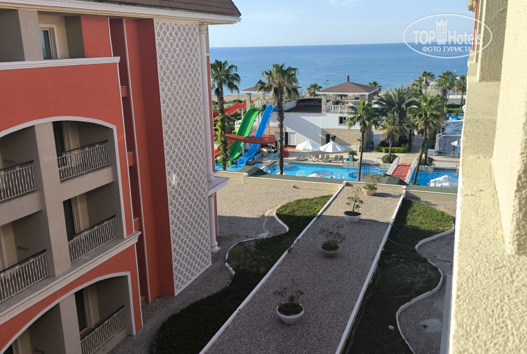 Первый раз отдыхали с туроператоров FAN SAN. Ночной перелет из Москвы, в отель привезли после 9 часов утра, на рецепшне оформили проживание оперативно, направили на завтрак, предупредив, что номер будет готов через два-три часа. Сотрудники отеля были доброжелательны. Мы подошли через час и нам сразу предоставили ключи от номера. Хочу отметить работу менеджера по работе с туристами (к сожалению не запомнил имя), подробно и профессионально довела до нас информацию об отеле. В номере нас ждал сюрприз, орешки, фрукты и вино. Все неожиданно и приятно. На территории отеля расположены бассейны, в том числе и детский, водные горки, кафе и бары. Правда на пляже бар ещё не работает. Пляж песочный, вход в воду тоже песок. Вода ещё прохладная, но сразу искупались. Обедать решили в кафе, в ресторан не пошли. Ужинали в ресторане, зал большой, а учитываю что туристов в отеле ещё мало очередей в ресторане нет. Выбор вторых блюд достаточен, курица, говядина, люля-кебаб из баранины. В общем первый день принес много положительных эмоций