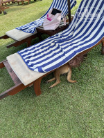 Сам отель на фото выглядит гораздо лучше, чем на самом деле. Мебель обшарпана и в пятнах, двери на балкон закрываются плохо и неплотно через щель залетают москиты. Во время ливней в коридорах большие лужи.Территория отеля небольшая. На территории проживают несколько кошек и две собаки, животные мирные, но не комфортно когда у тебя под лежаком постоянно спят собаки, а кошки трутся около столов во время еды.