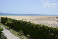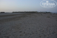 Отель длинный. И еще пирс. От ресепшена до места купания на пирсе выходит где-то метров 500. Самая дальняя часть пирса - причал, туда не пускают. Ночью на пирс не пускают. Вообще доступ на пирс открывают около 9 утра - как только пришел спасатель. Полоса прибоя песочек. Дальше нечто наподобие глины, очень мелко, в спец тапочках можно спокойно ходить. В отлив вода уходит от берега.
