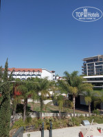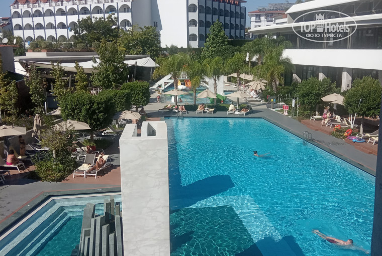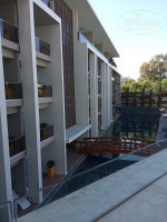 Территория отеля,небольшая,но компактная.На территории есть бассейн взрослый и детский.Пляж находится не рядом с отелем.До него нужно идти минут пять,по мощеной дорожке,под горочку.Еще до пляжа ездит маленькая машинка,но на нее мы попали два раза. Тк она маленькая,всех желающих увести не может.