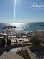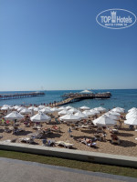 Сам пляж чистый,лежаков всегда хватало.Заход в море не очень удобный,но тут вины отеля нет.Заходишь в море по природным плитам,по ощущениям,как будто бетонную дорогу затопило водой.Заход плавный,идешь по этой дороге и постепенно начинается глубина.Есть пирс ,на нем бар и лежаки.Посторонних туда не пускали.Если встать лицом к пирсу и пойти налево,метров через сто начинается море с песчаным дном .С утра на пляже проводили зарядку.Больше из анимации на пляже никого не видели.