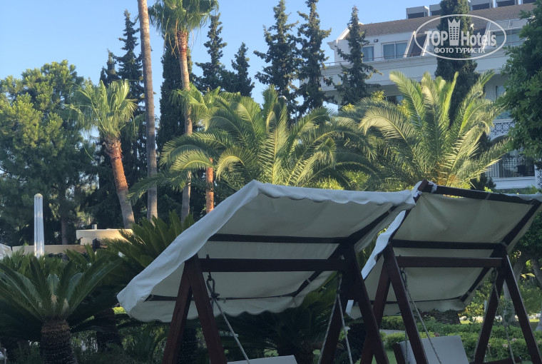 Территория отеля небольшая, но очень красивая, зеленая и ухоженная. Питание очень разнообразное и вкусное. Очень большой выбор рыбы и особенно мяса (индейка, курица, телятина, баранина, ягненок, говядина). Один раз за две недели был рыбный ужин, где помимо раков, мидий и ролл жарили стейки из тунца, которого разделывали прям в ресторане. Вкусный хумус, который я очень люблю. Много десертов, и всегда сладкие арбузы.