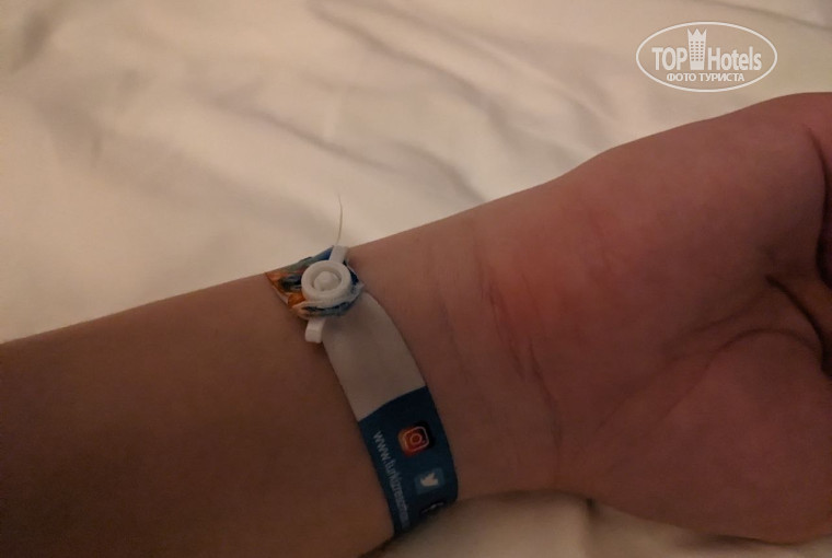 Отель принуждает носить браслеты. Браслеты проверяли при входе на террасу, на пляж, в бары, в основное здание. Браслеты были сделаны из неприятной ткани, раздражали руку, они были одноразовыми и неснимаемыми, плотно прилегали к коже. Мы просили в первый день надеть браслет так, чтобы снимать можно было, на что нам сказали, что это строго запрещено, чтобы мы ни в коем случае якобы не передавали браслеты каким-нибудь чужим людям, и вроде даже сказали про какой-то штраф, но я не стал расспрашивать.