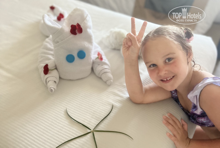 Еще хочется отметить уборщика Мухаммед крутит просто невероятные штуки из полотенец ( чучела,слоники,лебеди) мой муж муж и дети просто в диком восторге.