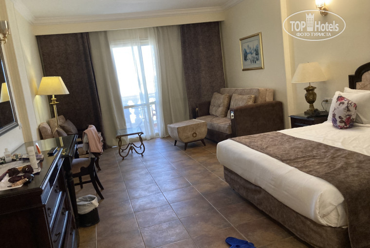 Территория большая много бассейнов водяные горки большие и маленькие.!инсталляции- металл, дерево, цветные фонтаны вечером, динозавры с подсветкой. Анимация после обеда, в21 вечером. Еда не очень разнообразная, фрукты, десерт, сок маленький ассортимент. Шведский стол/ завтрак обед ужин. Днем в барах только напитки, кофе. Винной карты нет и поэтому не знаешь, что у них есть. Бутиков на территории отеля нет. На пляж ездит шаттл только в 10 утра, 14 обратно. Пляж лагуна песчаный волн нет. Зонты шезлонги бесплатно. Бар наш отель не обслуживает, только платно. Мороженое 2$. Номер очень хороший. Мебель туалет. Холодильник, фен кондиционер норм. Уборка смена полотенец , 2 бутылки воды каждый день. В туалете- шампунь, шампунь и мыло. Кондиционера для волос нет. Делают ремонты в других шале. Персонал приветливый, некоторые говорят по-русски. Девочка аниматор Татьяна , можно решить вопросы, информацию получить. Очень слабый вайфай на ресепшене и у бассейнов. 1 канал ТВ русский. Вообще отелем довольна, конечно это не Турция, но неплохо. Конечно хотелось бы больше ассортимента еды фруктов десерта и напитков. И в баре не хватает перекусов. В общем отелем очень довольна. Находится на главной дороге, поэтому добираться можно на маршрутке в любое место за 10 фунтов с человека. Рекомендую