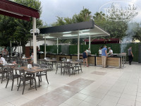 2 часть территории - через дорогу, как идти к пляжу, зеленая, большая, красивая, идти 2-3 минуты к пляжу. В обед на этой территории готовят гёзлеме (но делать его ооооооочень долго). Мы стали в очередь за ним, перед нами стояли толи друзья этой женщины что готовила, не знаю, они с ней активно общались. Их было двое. Так вот, она приготовила несколько этих гёзлеме (они большие их режут на много частей чтоб хватило многим людям) но женщина готовила лепешки, резала и выдавала только им… и так 2 или 3 штуки… Это было очень долго и как-то неприятно по отношению к другим людям в очереди, которые ждали пол часа +. Поэтому, постояли мы один раз за ними больше часа и больше не приходили. Это бессмысленная трата времени!