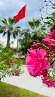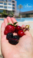 На обеде пара супчиков, всегда несколько салатов овощных, десерты, курица, что нибудь тушеное с мясом, тушеные овощи, макароны и отдельно соус и сыр к ним. На ужин всегда гриль жарят - курица, рыба по моему тоже каждый день была на гриле, пекут пиде. Всегда были яблоки, груши, апельсины. Один раз в турецкий день (он по пятницам, и в этот день готовят много мяса) была клубника. Другого разнообразия по фруктам не было, но мы покупали на рынке в Камере клубнику за 50 лир кг, шелковицу 70 лир за контейнер и черешню. В баре у пляжа готовят бургеры, пиде, гезлеме, делают фри, стоят овощи, фрукты, десерты в минимальном наборе. Если не успели на обед, там можно перекусить. Там же пиво, кофе, соки. Вообщем, всегда можно найти что покушать, повторюсь, что без изысков, все просто, но очень прилично. За все это время ни у кого из нас не было никаких проблем с животом)
