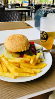 Про пляж я читала, и он соответствует отзывам. Без обуви сложно зайти, на входе намытая горка гальки, в которую проваливаются ноги. Вообщем, заход не самый лучший. Но вода чистая, мы купались в первый же день, уже достаточно комфортная для купания. На пляже работал бар, но были только напитки, без еды. Второй пляж еще не работал.