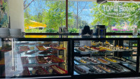 У главного бассейна была открыта кондитерская, где можно попить кофе/чай с десертами, и взять мороженое. Десерты однотипные, и по вкусу мне не очень понравились. Мороженое можно брать весь день без ограничений (что не веда встречается), и в шариках оно очень вкусное. Так же было в упаковках. И еще иногда ездила машинка с холодильником, в котором было тоже мороженое, которое развозили у бассейна и подвозили прям к лежакам) это прикольно. У бара на виллах оно тоже есть.