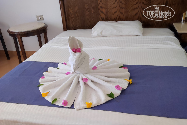 Замечательный египетский отель, где все продумано и осуществлено для отдыха и перезагрузки. Красивая зеленая территория, песочный пляж с шезлонгами и зонтами, великолепное море и для любителей пляжного отдыха и любителей сноркелинга, для более серьезных пловцов- катера у берега. Разнообразное питание в ресторане на берегу моря, вечерами кухня народов мира в ресторане отеля, по четвергам шикарные вечеринки-ужины на территории отеля с концертами. Удивительно при этом учтены вкусы и пристрастия отдыхающих. Нельзя не отметить персонал отеля: доброжелательные, отлично выполняющие свою работу и больше, всегда готовые придти на помощь. Отдельно хочется сказать огромное спасибо главному менеджеру Хеди Бен Аисса. В отеле он везде: на завтраках, обедах и ужинах, на праздниках и приемах гостей, его любят и работники и туристы. Чудесные воспоминания о Ларе, русскоязычном менеджере, все возникающие вопросы на русском к ней, а еще поможет выбрать ресторан аля-кард, чтобы украсить ваш отдых еще ярче. Уборкой в нашем номере занимался Таха(его фото в отзыве) , спасибо ему за создаваемую обстановку чистоты и сюрприза. Каждый раз, возвращаясь с пляжа, ожидали его произведений из полотенец и цветов. Спасибо всем большое. До новых встреч.