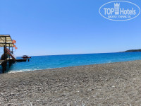 Сама пляжная зона небольшая, шезлонги лежаки нормальные, не сломанные не заезженные. Пляж галька и песок, заход в море сразу в глубину буквально метра 3-4 от моря и до дна не достать ногами.