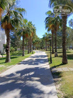 Отель не на первой линии т.ч. до пляжа нужно пройтись. Вообще у отеля 2 пляжа первый и второй (новый появился в прошлом году вроде, находится слева от 1-го пляжа через два отеля, емельда и еще один). Сейчас правда в мае работал только 1й который поменьше (2й, который большой, в июне вроде планируют открыть) до него от главного корпуса ну минут 5-7 пешком (от вилл будет дольше особенно если от самых дальних) по технической дороге между двумя соседними отелями. Но дорога, хоть и называется техническая, в целом хорошая т.к. зелень и цветы с двух соседних отелей выходят на нее.