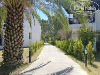 Территория большая разделенная дорогой на территорию у основного здания и комплекс вилл. У основного здания главный бассейн с парой водных горок, детский бассейн, бары, кафе, ресторан, левее от него теннисные корты и детский клуб. А где виллы там большая зеленая территория с пальмами, цветами и классными видами на горы, а так же с кошками, петухами, индюками))У вилл есть зона со своими бассейнам баром/кафе . Есть виллы с выходом прямо к бассейну. Вообще комплекс вилл большой но не все виллы отеля некоторые частные, некоторые как апартаменты на долгий срок сдаются .