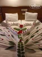 Заселили быстро. В отеле три корпуса. A,B,C. Реновация была сделана только в корпусе A и свободных номеров там почти никогда не бывает. Нас всех заселили в корпус C. Позже была возможность без доплаты переселиться в корпус A, но взвесив все за и против я предпочла остаться в корпусе C. Номер 3703 порадовал просторной ванной комнатой, балконом с боковым видом на море, отлично работающими кондиционером и мини холодильником, но при этом поверг в шок ламповым телевизором, встроенным в стену душем, струя которого била в одну сторону и по силе напора напоминала душ шарко, и мебелью в лучшем случае изготовленной в 80-х годах. При этом в номере всегда было чисто. Девочки не только застилали постель и выносили мусор, но и мыли полы.
