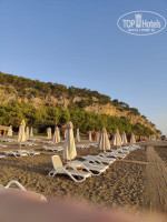 Пляж большой, с мелкой галькой, но там где заход идут крупные камни от чего не очень комфортно.