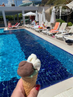 Отдыхали с Дочерью в мае 2024 г. Отдыхом остались Очень Довольны, Рекомендуем! Приехали в отель в 11 утра, нас проводили на завтрак и сразу заселили ( не надо было ждать до 14/00). Номер отличный, кондиционер работает, мини бар пополняют ежедневно, кола, соки, чай, кофе. Сейф, чайник, холодильник , вай фай в номере все это Бесплатно. Мы брали номер Эконом, но нам дали Пентхаус с видом на море, хотя мы не просили и не доплачивали. Есть номера с видом на соседний отель, прям впритык (. Отель новый, мебель , матрас, подушки все чистое, хрустящее. Белье меняли ежедневно, но мы все равно по 1 Доллару оставляли за уборку. Есть фитнес зал, хамам, соляная комната, стим комната я ходила ежедневно после обеда, тоже бесплатно и мало народу ( но может потому что еще не сезон?). Также записались в АляКарт в ресторан Азиатской кухни .Там нас угощали Креветками, стейком , десертом. До моря минут 5 пешком по прекрасной зеленой территории. Есть мини зоопарк с курочками, уточками, кролик. Шикарная огромная крытая Детская территория с качелями, карусель, батуты, музыка, аниматоры. Либо около отеля дежурит шаттл, отвозит даже при не полной посадке. Лежаков очень много. Пляж и песочек и мелкие камушки. Воллейбол и игры на пляже от аниматоров. 4 шт Водные горки работают по расписанию. Рядом МОРОЖЕНОЕ , каждый день новый вкус. У бассейна Гамбургеры, картошка фри, пончики, вафли, овощи, фрукты, напитки. На пляже Пицца из печи, Лепешки Гезлеме, Шаурма/Кебаб, напитки. Выбор блюд настолько разнообразный , что мы не смогли все попробовать и обойти все столовые. Живая музыка во время ужина. Попали на сезон клубники, угощали клубникой в шоколаде, инжир, мед в Сотах. Из мяса: Индейка, телятина, свинина, разнообразная рыба. Десерты это шедевр и Респект шефу-Кондитеру. Вечером в АмфиТеатре (около пляжа) Дискотеки, Караоке, Шоу Программы, мини диско с аниматорами.