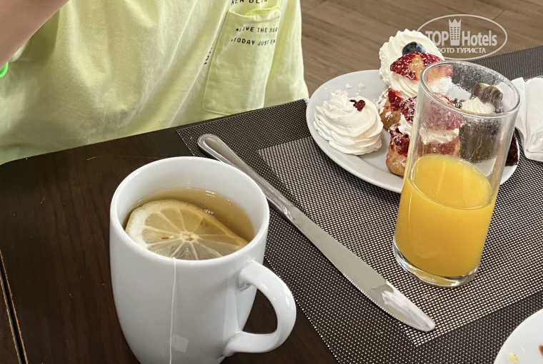 Питание: отличное, брали завтраки и ужины ( в отличии от все включено не входит алкоголь и свежевыжатые соки). Очень понравился и ассортимент и разнообразие, всегда есть мясо нескольких видов, рыба (утром слабосоленая масляная и горбуша), фрукты, овощи, выпечка, гарниры, соленья, шоколадные пасты, мед 6 видов, сухие завтраки, кофемашины, детский стол, диетический, есть молоко растительное разных видов. Минус в том, что в час пик может не быть свободных столиков