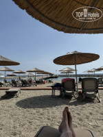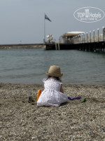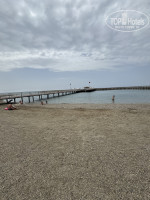Пляж.Это разочарование.я видела, что волнорез, но не думала что выглядит на столько грустно( и вода была грязная, все в мелких ошметках каких-то, заход в плане камушков не комфортный, я заходила только с лестницы с пирса, прыгать неоткуда (а хотелось бы,тк вода ледяная для меня) открытое море только за территорией отеля по бокам, сама водная зона маленькая и в пик загрузки мне представляется здесь лягушатник с детишками...лежаков было достаточно и комфортно в этом плане.