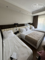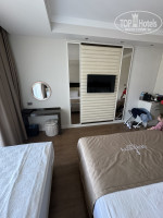 Номер. сам по себе не плохой, этаж 1 - тот же, где лобби, там большинство с детьми заселяют, шумоизоляция на троечку, слышно телевизор соседей и когда включают душ, разговоры слышно не было) вид ужасный, на стройку и соседний отель, в целом без претензии, но надо быть готовым, что кроме номера с видом на море - все виды такие себе( с одного бока вплотную один отель, сзади стройка, с другого бока тоже отель и стройка, у нас получается был 1 этаж и перед балконом ходили люди и персонал, приезжали разгружаться машины,глобально не напрягало, хотя в номере мы проводили прилично времени тк были с маленьким ребенком. телевизор почему то не работал, но мы его и не смотрели, вызывать чинить не стали, в остальном номер хороший как и пишут, дали аж с 4 спальными местами (1 большая кровать и 2 маленькие по бокам)