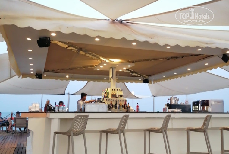 Далее ЕДА- нет изысков, обычная еда для отеля их категории, говядина, баранина, ягненок, пару видов рыбы запечённой. Однообразные завтраки- сосиски в кисло-сладком соусе, каши, панкейки и т.д. По средам дают роллы- они однообразные...Есть борщ свекольный, оливье и окрошка, но не привычная нам. Очень вкусный суп был Турецкий свадебный назывался, очень вкусный гриль- печень . сердце, овощи-за это огромное спасибо! Но в последний день пребывания случилась неприятная ситуация, на 1 и 2 фото ее видно, был плов видимо из индейки и она была с ПЕРЬЯМИ-это было оочень грустно....Попали на их праздник День Ататюрка и молодежи- был вынос торта с шествием по территории и концерт. Ужины были тоже однообразны, закуски одни и те же. Десертов много, но мне приглянулись несколько- пирог песочный с ягодами и яблоками, тыква запеченная и еще парочка. остальное -стандарт. Так же на территории много баров, есть свой Старбакс и Патиссари с десертами, в баре у пляжа Марина жарит пирожки и беляши, каждый день разные, то с картошкой, то с мясом- по мне обычные дрожжевые пирожки, немного не дожаренные. Называются Барсаки. Есть бар с фруктами, он за территорией детского аквапарка, фрукты тоже обычные, сезонные, никаких экзотических не было.ТЕРРИТОРИЯ- большая, очень ухоженная, красивая. Видно, что за всем ухаживают. Анимация на 5+, каждый день разные тематические концерты и выступления различных групп, очень понравилось-молодцы! Если на Ваши даты, нахождения в отеле приходится концерт, какой либо звезды, Вы будете его смотреть издалека, либо нужно будет заплатить, либо ооочень заранее занимать место поближе. Бармены молодцы-коктейли вкусные, но нужно смотреть, что наливают. в CINA баре есть напитки в стекле б/а, по вечерам там же играет пианист-очень красиво, молодец! Основная масса обслуживающего персонала это Казахстанцы, в основном ресторане очень быстро все убирают, предлагают напитки-это очень понравилось! Отдыхающие основная масса русские, казахи, есть немцы и поляки. Заход в море - только в обуви, песок с галькой. В целом отдых понравился, но больше бы одного раза наверное не поехали бы. По вечерам дискотеки с русской музыкой и гоу-гоу, такое чувство, что ты в Сочи на пляже )))