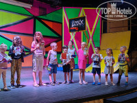 2) Анимация для детей. Девушка аниматор русская, в положении, но ей это не мешает выкладываться на все 200%))) Мой сын к ней подходил и говорил, что любит ее)) 2-3 часа она с детками делает поделки с утра (причем крутые, не а-ля вот вам карандаши и лист, рисуйте солнце). Ближе к вечеру часа 2 игры с детьми. Мы ходили не много, но помню мини-гольф был. Еще аквагрим однажды, но тоже не застали. В 21-00 каждый день (вроде кроме вс) мини-диско в амфитеатре. Ведет она же и аниматор-турок. Он показывал танцы, девушка тоже, развлекали детей играми. В конце всегда вызывали тех, кто сделал поделку, а мы кричали ВАААУ. Радости у ребенка было...)))