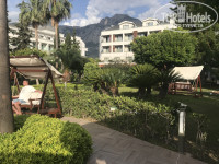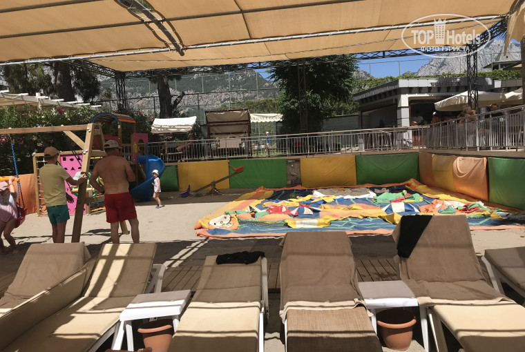 Для такого количества туристов очень маленькая, Бассейн, основной корпус , и маленькие лужайки где стоят качели где можно присесть в тени , но их всего несколько штук , и места на всех не хватает