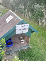 Территория небольшая, но компактная. Цветы, зелень, качели - всё приятно украшает территорию. Есть и кошачий домик. Самое главное - хороший WI-FI! Прекрасно берёт на пляже.