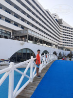 Питание на пляже в баре отличное. Официанты подходят сразу как только присели. Там готовят прекрасную красную рыбу на гриле, креветки и морепродукты в сковородке под сырным соусом , пицца, салаты..ну прям супер! Можно в основной ресторан даже и не думать ходить в обед! Кстати, на пляже в ресторане -это действительно ресторан, прекрасная мебель, подушечки, очень уютно!