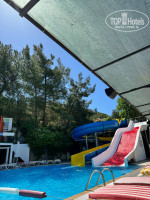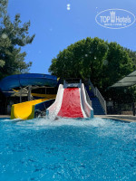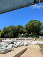 4. Территория: небольшая, пока еще не совсем благоустроенная, есть что доделать и было бы супер. Один бассейн, вполне достаточного размера, 2 горки, работают по расписанию, желающих всегда много. Есть тенисный стол, можно брать ракетки. При нас тестировали надувные городки, ворота, прыгалки, но не работали. Пока на этой площадке мы игралди в пляжный теннис, кто то в волейбол. Есть небольшой детский клуб. Амфитеатр заброшет, на зоне где по логике должна быть сцена перед ним, стоят шезлонги. Сцена перенесена к ресторану, думаю как раз из-за соседства с амфитеатром частных домов.