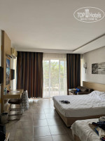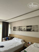 3. Заселение: все очень удобно, заранее все номера распределены. На ресепшен паспорт и если ваш номер готов - сразу получаете ключи. В 11 мы уже были в номере. Если номер не готов, вам все равно оденут браслет (а не как писали в отзывах, что нет) и можете спокойно пользоваться благами. При выезде также браслет не снимают. Номер достался на 3 этаже, с удачным видом на гору, сад и частный сектор. Вечером тихо, утром тоже никто еще не шумит. На другую сторону вид не очень удачный думаю этажа до 4, даже на 3-м упирался балкон в насыпь, но тоже тихо. Номера с видом на бассейн, удобно, но шумно днем. С видом на сцену + ресторан, шумно вечером до 23. Но потом музыку в это время сразу выключают, так как рядом частный сектори жалуются. Номера большие, даже пару или одног человека селят в трехместный номер. Номера обновлены, все работает, в мини баре при заселении 2 бутылки воды, больше не пополняют. Шампуни, гели - добавляют.