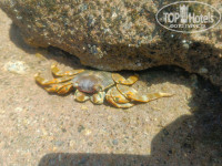Пляж песчаный, лежаков с зонтиками немало, также есть под навесом. Войти в море можно только с понтона. Понтон очень надежный, три лестницы для спуска/подъема, т.е. очередей нет. Территория для купания огорожена буйками, за них заплывать не разрешают, сразу свистят в свисток. Но если есть запреты, то есть и нарушители. Каким оказался мой супруг)), но и не только он. Он выплыл за буйки в левую сторону, посмотреть окрестности. Но, по его мнению, риф этого отеля интереснее, чем соседний. Кстати, понтон у них плавучий и при волнении сильно раскачивается. Спуститься в воду с него нас вежливо не пустили. Также есть небольшой огороженный буйками участочек возле берега. Там можно в коралловым тапочках войти и посмотреть рыбок, не окунаясь, т.к. мелко. Есть бар на пляже, ребята всегда принесут любые прохладительные напитки. Если нанесет мусор из моря или ветром, то сразу же убирают. Приливы и отливы дважды в сутки, смещаются по времени ежедневно.