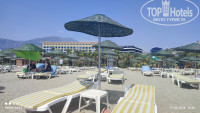Не очень большая, но ухоженная. Есть два бассейна открытых и один закрытый. Шезлонгов достаточно. Ходили в хамам, релакс полнейший. За территорией есть магазин с вещами и мини мигрос. Можно доехать до Алании на автобусе, остановка рядом с отелем.