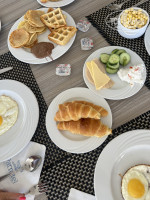 Утром каши, очень кучные оладушки и вафли ( с настоящими шоколадом) много печеного и конечно омлеты .