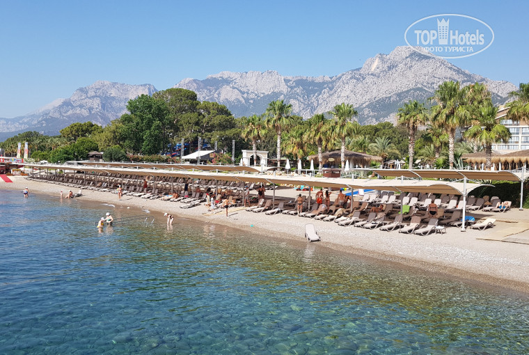 Море было довольно чистым, хотя случались и мутные дни. Пляж оборудован только напротив главного корпуса. Лежаки находятся под навесом, что удобнее, чем зонтики. На пляже под ногами песок с галькой, но в воде сразу начинаются камни, переходящие в валуны, поэтому «коралки» на лапах обязательны, или же «гоу на пирс». На пирсе есть лежаки с зонтиками и душ с пресной водой. В непосредственной близости от пирса можно встретить около десятка видов местных рыбёшек, которых не возражают против кормления, особенно прожорливые кефали. Береговая линия напротив вилл – «дикий» пляж с редкими VIP-беседками. Там было практически безлюдно и вода более прозрачная.