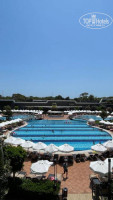 Ездили с друзьями с 08 по 17 июня. Всё очень понравилось!!! Отель расположен рядом с античным городом Сиде, до которого можно доехать на автобусе от отеля за 1$. Нам дали номер на 7 этаже с видом на реку по которой плавали пиратские корабли))) Если поедите с детьми, им очень понравится. Отель очень красивый, чистый и современный. Персонал отеля вежливый и гостеприимный. Так как мы приехали рано утром, а заселение в обед, нам предложили погулять по территории отеля и показали где что находится, какие услуги предлагает отель туристам. Нас было трое в одном номере, а карточки дали только 2, не очень удобно конечно, но ничего справились))). На территории отеля (Лобби) есть отличный бар с импортными спиртными напитками, так же есть еще два бара где готовят очень вкусные коктейли и один снек-бар около бассейна. На -2 этаже находятся большие залы для приёма пищи, магазины, сауна, хамам, старбакс, бар, парикмахерский салон и даже тату-студия. На территории отеля так же можно найти занятия по интересам. Сходить в тренажёрный зал, поиграть в бильярд, настольный теннис, шахматы, дартс, мини-гольф, боулинг, пострелять из ружья, покататься с водяных горок. Вторая сторона отеля выходит на шикарный бассейн с шезлонгами. Который как бы поделён на 3, в одном из которых есть джакузи. Так же есть детский бассейн. Если не хотите ездить на экскурсии, вы точно не заскучаете в самом отеле. В бассейне проводятся игры, пенные вечеринки, аквааэробика. Море и пляж расположены в 5 минутах ходьбы от отеля, но если не хотите пройтись, можно доехать на баггах (как машины для гольфа) за несколько секунд. Море хрустально-прозрачное. После заката солнца в море плавать отдельное удовольствие. Оно тёплое как парное молоко. Жалко только что пляж песочно-галечный. По гальке не все могут ходить. Так что, берите специальную обувь. Так же на территории отеля увы нет аптеки. Меня угораздило простыть в самый первый день от кондиционера, и аптеку удалось найти на экскурсии в Алании. Номер нам понравился. Уборку делают каждый день. Постельное бельё белоснежное, мягкие подушки, но одно но. Нас было трое, а одеял было только 2 и по первости средства личной гигиены нам комплекты давали на 2-их. И ещё, почему-то в Турции в отелях всегда нет освежителя воздуха для туалетной комнаты. Но в целом всё супер!!! По вечерам на улице была дискотека с нашей стороны отеля, правда хотелось бы музыку повеселее и более популярную. Но опять таки, на вкус на цвет как говориться....Контингент отдыхающих был от мала до велика, по этому что уж там. Кому что)))) Да на этаже лобби можно было послушать классическую музыку на рояле. Очень красиво и необычно))). В результате, отдыхом мы все остались очень довольны!!!! Всем рекомендуем данный отель и сами ещё обязательно в него приедем!!! Спасибо всем за прекрасные воспоминания!!!