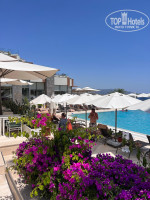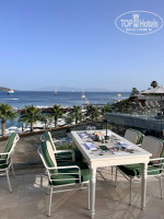 Отель построен на склоне и имеет несколько уровней и площадок, спускающихся к пляжу. Самая высокая точка – итальянский ресторан, далее панорамный бассейн, на этом же уровне главный ресторан и лобби, далее лаундж, где вечером выступают разные кавер группы, ближе к пляжу ресторан Pepper, где в дневное время можно пообедать по меню, а в вечерние часы это турецкий аля-карт, ну и самая низкая точка отеля – пляжный бар в бохо стиле и сам пляж отеля.