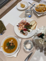 Выбор блюд на шведской линии в главном ресторане не такой широкий, как в отелях анталийского побережья, но блюда приготовлены очень качественно и всегда есть из чего выбрать. На шведке был язык, маринованные креветки, много мяса, мед в сотах, лосось, много другой рыбы холодного и горячего копчения. Два вида супа. Турецкая выпечка и пицца. Все столы сервируются хлопком. Официанты работают шустро. С открытой террасы главного ресторана также открывается потрясающий вид на залив.