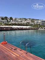 Пляжная зона разделена на две части – огромная платформа, вход в воду по лестнице, и слева есть песчаная насыпная часть, где можно комфортно зайти в воду с берега. Вода чистая и прозрачная. Плавает много рыб. На пляже в центре водных видов спорта работают классные дружелюбные ребята. Отдыхая на пляже, вы можете заказать любую еду по меню из ресторана Pepper – ее доставят до вашего лежака в красивых боксах. Ребята официанты носятся, как веники, не представляю, сколько сил и энергии надо иметь, чтобы целый день на такой жаре провести на ногах. Хочу отметить официанта Tolunay – парень всегда в прекрасном настроении, поддержит беседу и очень шустро организует напитки. С 16 до 19 в баре на пляже играет Диджей. Парня зовут Dougkan. Хочется сказать ему огромнейшее спасибо за крутые сеты и возможность потанцевать под модные треки. Дункан, передаю тебе огромный привет. Ты сделал наш отдых особенным благодаря своему творчеству.