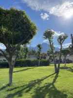- Территория. Большая, зеленая. Удобная по локациям. Очень классно гулять в соснах вилл, наслаждаться ароматами цветов, удивляться бананами и гигантским кактусами и нырять там в бассейны. Очень красиво и не так жарко). Там же «на отшибе» амфитеатр и детский клуб. Если бы все концерты были там, мы бы вообще были счастливы, но иногда тусовки были под окнами. Для тех, у кого в 10 отбой не актуально, но не смертельно) в целом до 12 все заканчивалось. За территорию ходить некуда, это надо учитывать. До магазинов деревни идти минут 20 вдоль дороги, мигроса нет. Мы в итоге никуда и не пошли. Впервые столкнулись с перекрытой набережной - обычно по морю гуляем вдоль всех отелей, но тут «сосед» мирада на входе на пляж поставил будку и никого не пускают, поэтому получается что ты заблокирован на территории своего отеля, ну или на дикий идти. Неприятно немного, но у отеля шикарная территория - в целом нагуливались)