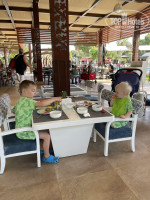 - Еда. Один большой плюс. Вода бутылки в обилии. Айран, соки-пакет. Есть для детей баночки с пюре, молочные коктейли в пакетах, йогурты! По ресторану всё вкусно, свежее. Много свежих овощей и фруктов. Наелись трав, помидоров, арбузов в мае! Апельсины, грейпфрут очень вкусные. Яблоки, груши, сливы, черешня пошла, персики. Бананы. Отдельно хочется отметить целый сырный отдел! Супы очень вкусные и местные и наша «лапша». Даже «национальное» очень адаптировано и на наш вкус. Гриль мясо, рыба всегда. Диетической еды тоже много. Вкуснейший рис)) Всем найдется что выбрать. Очень удобно для детей - есть и стульчики и специальные залы с детской и взрослой мебелью и диет.едой. Много сладостей, десертов. Мы не фанаты, но тыква в тахине это прям отвал всего. Очень радовал кофе в главном ресторане. Фильтр кофе мой топ) Но и из машин очень не дурной кофе. Турецкий в лобби баре можно выпить и в кофейне у бассейна. Кофе кстати везде чибо и мой любимый мехмет эфенди. На бассейне вафли с фруктами, турецкое мороженое (лимонное топ), крошка-картошка, шаурма, фри, крылышки как-то были очень понравились, лепешки гезлеме с айранчиком - любовь моя, пиццу не брали. Мороженое в упаковке в кофейне, ну и в главном ресторане дондурма. В аквапарке тоже был бар там хот-доги и что-то ещё, но мы там ни разу не ели. По ресторанам только два огорчения - сок, который типа свежевыжатый по сути микс пакетированного и мякоти. Но тут же и плюс стоят пакетированные соки, а не юппи) И вечная проблема Турции - неразделенные зоны для курящих и некурящих. Часто приходится есть вприкуску с вонью сигарет. Почему бы не разделить зоны в главном ресторане и на пляже? Это же уровень и уважение к клиентам. Особенно учитывая, что большинство с детьми.
