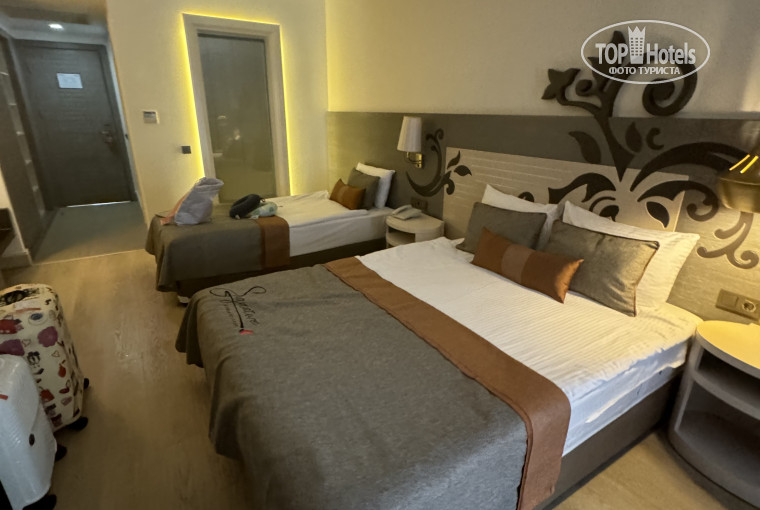 Мы приехали с друзьями но поняли что отель чистт для семейного отдыха, в плане питание и сервиса отель на высшем уровне.Но в отеле вечерняя анимация слабая и однобразная и пляж немного грязный.Есть классные водные горки для веселяя.Очень уютный отель.Но так как мы приехали только с друзьями без детей было не много скучно 😬.Для семейного отдыха отель шикарный .В птницу нас ожижал шикарный стол с море продуктамм .Уборка была каждый день.Русско говорящий персонал что не мало важно .А так же очень кьасснвй выбор коктейлей