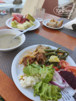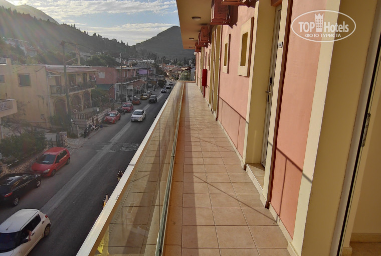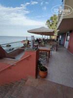 Прямо с пляжа поднявшись на несколько ступенек, оказываешься на террассе ресторана. В отеле полупансион. Можно обед заказать индивидуально по вполне демократичным ценам. Питание очень качественное и вкусное. Выбор не большой, но всегда есть мясо, рыба, овощи, фрукты, часто морепродукты. Воду набрать можно только во время завтрака, Поэтому мы ее покупали в соседнем с отелем магазине очень недогого вроде 2 евро за 6 полуторалитровых бутылок. Почти ещедневно рядом с пляжем останавливалась автолавка с разнообразными фруктами. Цены дороже, чем в Керкире.