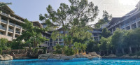 Мы прилетели ранним утром, при заселении нас предупредили, что ранее 14.00 не поселят, мы особо не расстроились, поскольку тут же переоделись, взяли полотенца и пошли на территорию. После обеда нас заселили. Номер у нас был 2015, категории Large room 65м2, на нулевом этаже справа от ресепшн. Очень удобное расположение. Номер огромный, с большой собственной террасой для отдыха с лежаками. Номер очень свежий, никакой старой или хотя бы подуставшей мебели, много розеток, ТВ, чайные принадлежности, холодильник с мини-баром (пиво, соки, газировки). В Ванной, отдельная душевая кабина, ванна, фен, набор косметики. По уборке все отлично, обычно до 12.00 уже все убрано, смена белья раз в 2-3 дня. В общем, по номеру вообще никаких претензий. Территория отеля также на уровне, очень ухоженная, красивая, зеленая, все поддерживается в полном порядке, сама территория огромная, вытянутая вдоль моря, в т.ч. территория вилл. Спа-зона неплохо оформлена, есть бесплатные услуги, хамам, фитнесс зал, крытый (прохладный) бассейн. Аквапарк, мини-клуб и амфитеатр расположены в самом конце отеля за виллами, до них придется прогуляться. У аквапарка есть свой бар, а также самое главное, оборудованный и практически безлюдный пляж с кристальной водой, в которую гении менеджмента не подсыпают песок, пытаясь исправить дно, следовательно там не поднимается муть и вода имеет фантастический цвет. Линия пляжа протяженная, примерно 800 метров, три пирса, два приватные, один общий. Пирсы оборудованы спусками, лежаками, есть холодильники с напитками(в прошлом году в Амаре Премьер был бар на пирсе). Основной пляж имеет общий длинный навес, оборудованные спуски-трапы в море, но из-за того, что дно пытаются подсыпать песком, который размывается, вода там мутновата и купаться желания нет, купаться всегда ходили или к аквапарку или левее от пирса. На основной территории есть несколько бассейнов, в тот что с мостиками добавляют прохладную воду, в нем еще можно купаться в жару, хотя сильной прохлады там нет, в основном бассейне, температура близка к бульону. Там проводятся все занятия и анимация. Лежаков достаточно, как у бассейнов, так и на пляже. Анимация, все стандартно, неплохая команда, стандартный набор активностей, есть вечерние шоу, собственного производства и привозные, концерты и живая музыка, периодически. На территории всего отеля, даже в отдаленных уголках, работает wi-fi, скорость в среднем 15-17 Мбит/сек, не ахти что, но для мессенджеров, соцсетей вполне достаточно. Если скорость начинает падать, нужно забыть сеть, затем заново подключиться, помогает. По персоналу по большей части нареканий нет, иногда есть огрехи в главном ресторане, совсем некритично. В общем, все что касается территории, размещения, качества работы персонала, претензий нет. Но. Вот теперь надо остановиться на концепции отеля. Тут уже буду сравнивать с прошлогодним Amara Premiere Palace. К сожалению концепция довольно сильно уступает, отель себя преподносит как Ultra all inclusive. Но по факту это просто классический, обычный all inclusive, но с ценой как за UAL. Еще раз напомню, прошлогодний был на 20% дешевле и там был реальный UAL. Итак питание, оно существенно менее разнообразно, чем в прошлом году. Нет, Вы не останетесь голодными, и по началу может даже не заметите, но я, спустя пару-тройку дней стал понимать, что приходя в ресторан, Вы вроде как видите вокруг и