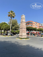 Инфраструктура. Много кафешек рядом, слева от отеля большой магазин Мигрос. Если пойти направо до часов есть рынок (работает по субботам) и рядом же по этой улице обменник, там самый выгодный курс. Можно своим ходом добраться до Аланьи. Для этого нужно выйти на улицу между морем и отелем и сесть на автобус №1. Проезд 30 лир на человека.
