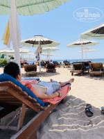 Море великолепное, прозрачное, снорклинг в нескольких местах сразу с пляжа. Это поразительно незабываемое зрелище - подводный мир! Вход песок, изредка встретится под водой камень, осторожнее при нырянии. Лежаков хватает на всех и даже больше, это огромный плюс. Полотенца дают на пляже по карточкам, очень здорово. Их сушат, не стирают, лицо не вытирайте или берите свое. Море для купания закрывается в 18:00. Купайтесь сразу в футболке - если вы как мы по 2 часа находитесь в море, чтобы не обгореть, так как и через воду плечи обгорели. На пляж идти 5 минут через газала бич.
