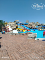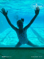 Бассейны. Их много и они очень чистые. Но к вечеру вода кипяток. И тут мы открыли для себя крытый бассейн. Я сперва скептически отнеслась. Обычно там никого нет и пахнет хлоркой, но нет. Чистая вода и никакого запаха. И народу много там, потому что это единственный водоём, где можно укрыться от изнуряющей жары. Есть совсем мелкий бассейн и джакузи. Тут же хамам и финская баня. Одна из стенок стеклянная - прикольная фотосессия получается. Водных город много по всей территории. Аквапарк вполне приличный. Работает с 14 до 17. Но две горки справа не работали, а жаль. И ещё минус, что плитка внизу и наверху безумно нагревается. Ноги просто пригорают. Детский аквапарк работает весь день.