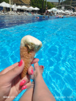 Питание. Не знаю как там можно остаться голодным. Да, примерно одно и тоже изо дня в день. Но вы же не будете сразу всё складывать в тарелку. Один день был шикарный лосось. Один день язык. Один суши (ну не умеют турки их готовить). С отравлением не видела ни одного человека. Куча баров со снеками. И картошка фри там вкуснее, чем в главном. Но вот бургеры и хот-доги... Совершенно безвкусные. Гезлеме зачетные! Раз ходили в мексиканский а-ля карт. Для разнообразия посему бы и нет. На пляже можно полноценно покушать. Были и макароны и рыба. Везде стоят холодильники с водой. Много точек с мороженным. Как в упаковке, так и шарики. Напитки в барах разнообразные. Бейлиза оригинального не нашла, льют свой. Остальные не знаю. Обслуживают быстро, многие могут объясниться на русском. Есть бармены, которые умеют делать коктейли, а есть такие, которым только пиво наливать (сделать коктейль с бейлизом без бейлиза). Баров тоже много по всей территории. Хотелось бы ещё у крытого бассейна.