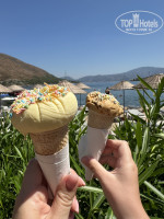 Добрый день , отхватили путевку за три дня до вылета по супер цене , летели coreander; ожидали от отеля худшего судя по отзывам , но остались очень довольны , кормят вкусно и выбор есть ( было три вида мяса , 5 видов фруктов , овощи свежие и тушенные , помидоры вкусные , много пирожен, утром яичница вкуснейшая) , напитки чай , кофе , газ вода , местное вино пила красное со льдом вкусно , местные джины водка виски , делают коктейли 3 вида. Море шикарное прохладное , но в такую жару охлаждает , бассейн хороший , можно без детей ходить в бассейн мерзой бариста там по красивее территория с видом на горы ; персонал отеля очень старается , все дружелюбные, меняли полотенца каждый день , заправляли кровать ,единственное полы грязные мы ходили в тапках ; вокруг шикарная природа горы сосны море , куча кафе с танцами , кальянами , вкусные коктейли , {удалено модератором: несанкционированная реклама} ездили на маршрутке в город мармарис , город красивый очень , мы довольны отдыхом очень , обязательно еще вернемся в мармарис