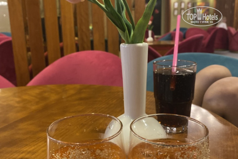 Напитки: вода, айран, газировка, соки, пиво, шампанское, коктейли, ром (Бакарди), джин местный, виски (Балантайнс), все нормального качества. единственное, вино невкусное, но тут каждому свое. мини-бар с б/а напитками пополняют в номерах ежедневно. Кофе гадость редкостная, делают более-менее приличный кофе рядом с баром, но только с 10 часов, хотя кофе был бы неплох к завтраку, после еды кофе пить уже не хочется.