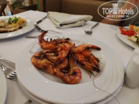 Теперь по питанию. Работает основной ресторан: завтрак с 7 до 10, обед с 12 до 15, ужин с 19 до 21.30. Завтраки однообразные: яйца разного вида приготовления, сыр, колбасы, хлопья, йогурты, каши, блинчики и вафли, фрукты, выпечка. Обед : овощи, мясо, картошка фри, супы, спагетти, пицца ( отель ориентирован на итальянцев- там всегда была очередь) Ужин в отель по дням недели определенные кухни мира, хотя я особой разницы не заметила. Так же овощи, мясо разного вида приготовления, картошка фри, рыба, говорят были крабы , креветки, выпечка, фрукты. За напитками всегда стоит очередь, для некоторых напитки разносят официанты(наверное за чаевые) Вот вроде и разнообразие по еде, но мы были не в восторге. Мясо не всегда вкусно приготовленное, морепродукты готовить не умеют, хотя дважды давали мелкую рыбу обжаренную до хруста - вот она была очень вкусной. Были в прошлом году в ОАЭ - вот там реально было все вкусно. В обед и на ужин брали мороженое, нам понравилось манговое. Голодными не останетесь. Возможно, мы слишком привередливы в еде. Блинчики на завтрак нам не понравились, а вафли сыну зашли, брал каждый день. Мне понравился йогурт клубничный- напомнил наш катык с клубникой. Дважды попробовала суп, но не понравилось, просто захотелось чего ни будь жиденького. Не могу сказать что совсем ничего не понравилось, были и вкусные блюда, но не всегда. Столы освобождают и готовят оперативно, но нет бумажных салфеток- после чистки креветок не знаешь как и чем вытереть руки.
